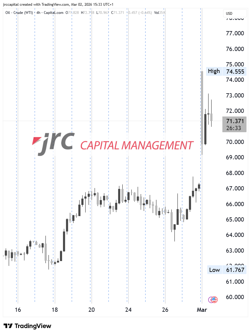 Iran-Konflikt lässt Öl explodieren | Risk Off dominiert Aktienmärkte Die Eskalation des Iran-Konflikts hat die globalen Finanzmärkte zum Wochenauftakt klar in den Risk‑Off‑Modus gedrückt. Über den Ölpreis kommt dabei ein klassischer Angebotsschock ins System, der die Inflationsdebatte und die Zinspfad‑Erwartungen der Anleger neu auflädt. Energie: Öl als zentraler Schockkanal Brent