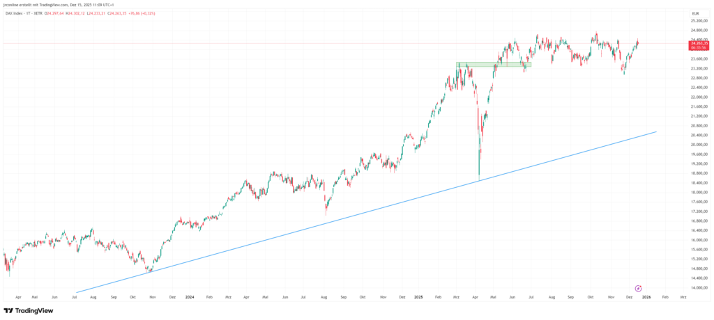Weihnachtsrally gewinnt Fahrt: DAX und Dow auf Rekordkurs Der Wochenausklang an den westlichen Börsen steht klar im Zeichen der laufenden Weihnachtsrally: Europa setzt die Aufwärtsbewegung vom Vortag fort, während die US‑Indizes nach neuen Rekorden vom Donnerstag mit stabilem Rückenwind für Risikoanlagen sorgen. Die Treiber bleiben die jüngste Fed‑Entscheidung mit weicherem Zinston sowie eine breit abgestützte […]
